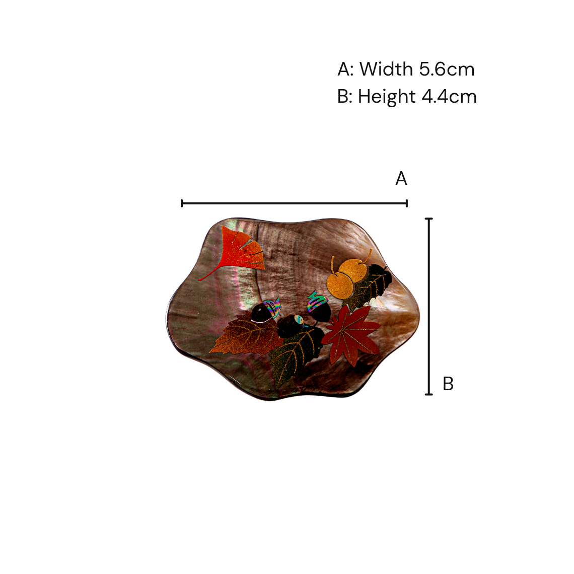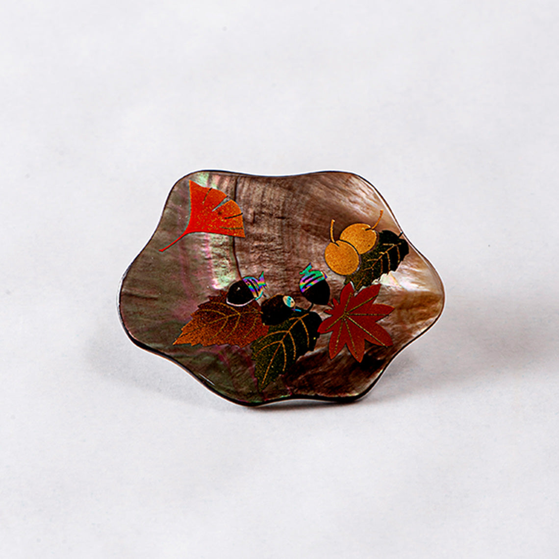 An array of autumn leaves in rich seasonal hues is captured with luminous artistry in Modern Makie. The harmony of tradition and innovation brings forth new lacquer crafts with mother of South Sea Pearl.