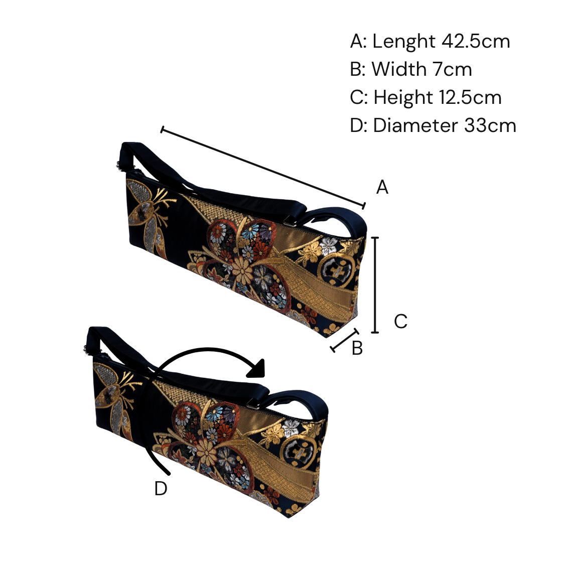 Each obi flute case bag is meticulously sewn with careful consideration of the fabric pattern, ensuring the design is showcased beautifully. By following the care instructions, you can enjoy this one-of-a-kind bag for years. The subtle interplay of light on the silk threads creates unique variations in color, making every bag truly singular.