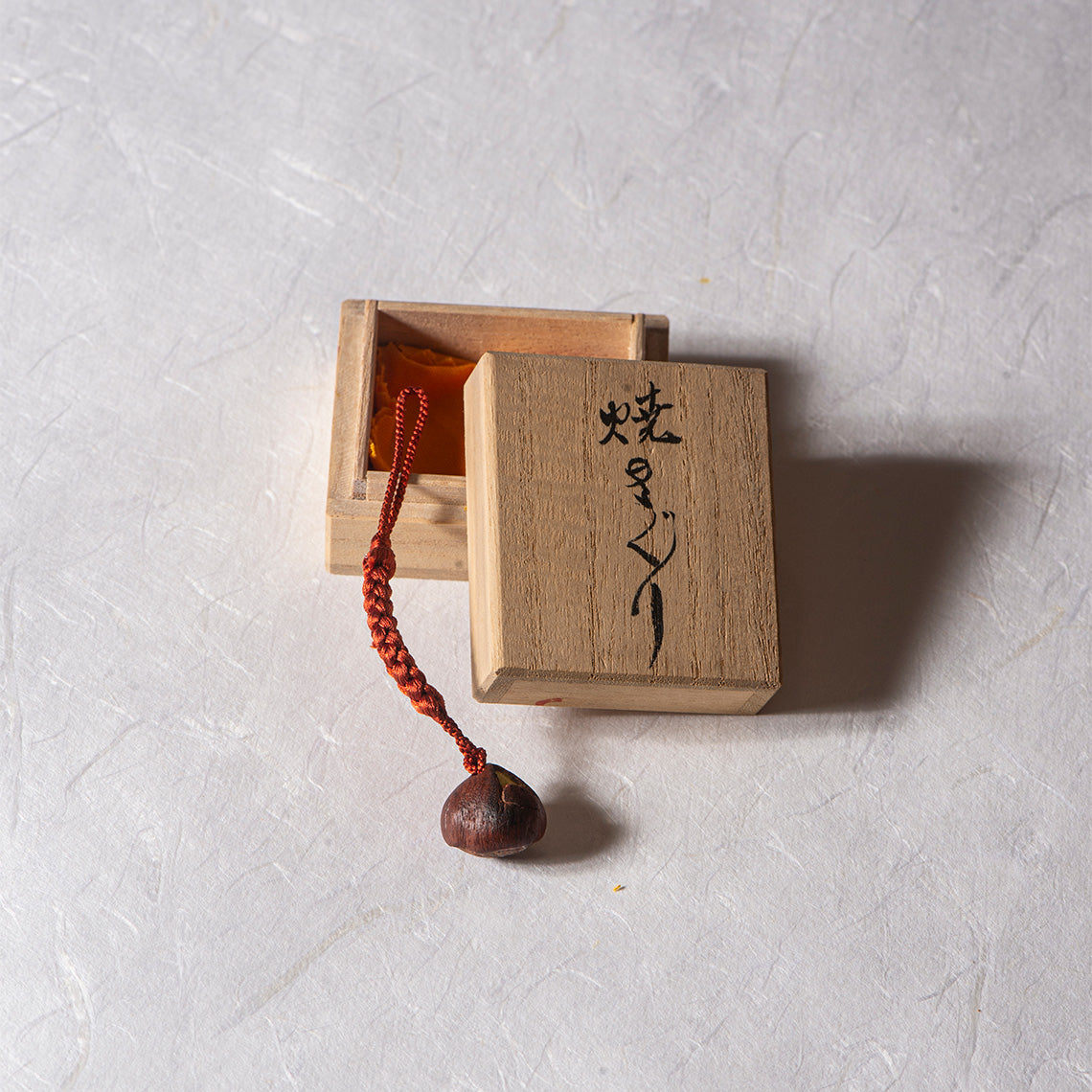 Carved from boxwood and accented with lacquer, this netsuke depicts roasted chestnuts with rich texture and warm tones. Traditionally used to secure items to a kimono’s sash, netsuke are now prized as elegant, collectible masterpieces of Japanese craftsmanship.